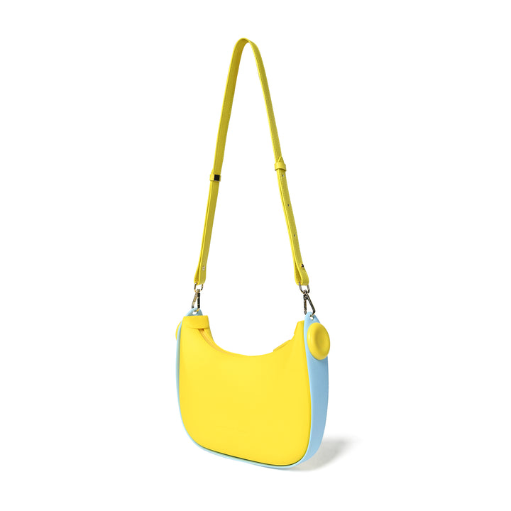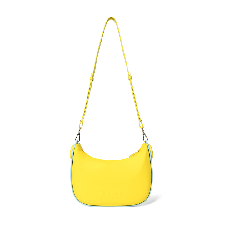 This vibrant crescent bag blends a zesty yellow body with dreamy sky blue straps, giving off ultimate summer energy. Lightweight, eye-catching, and impossibly fun, it's the perfect piece for brightening up your daily look or spicing up your vacay wardrobe.